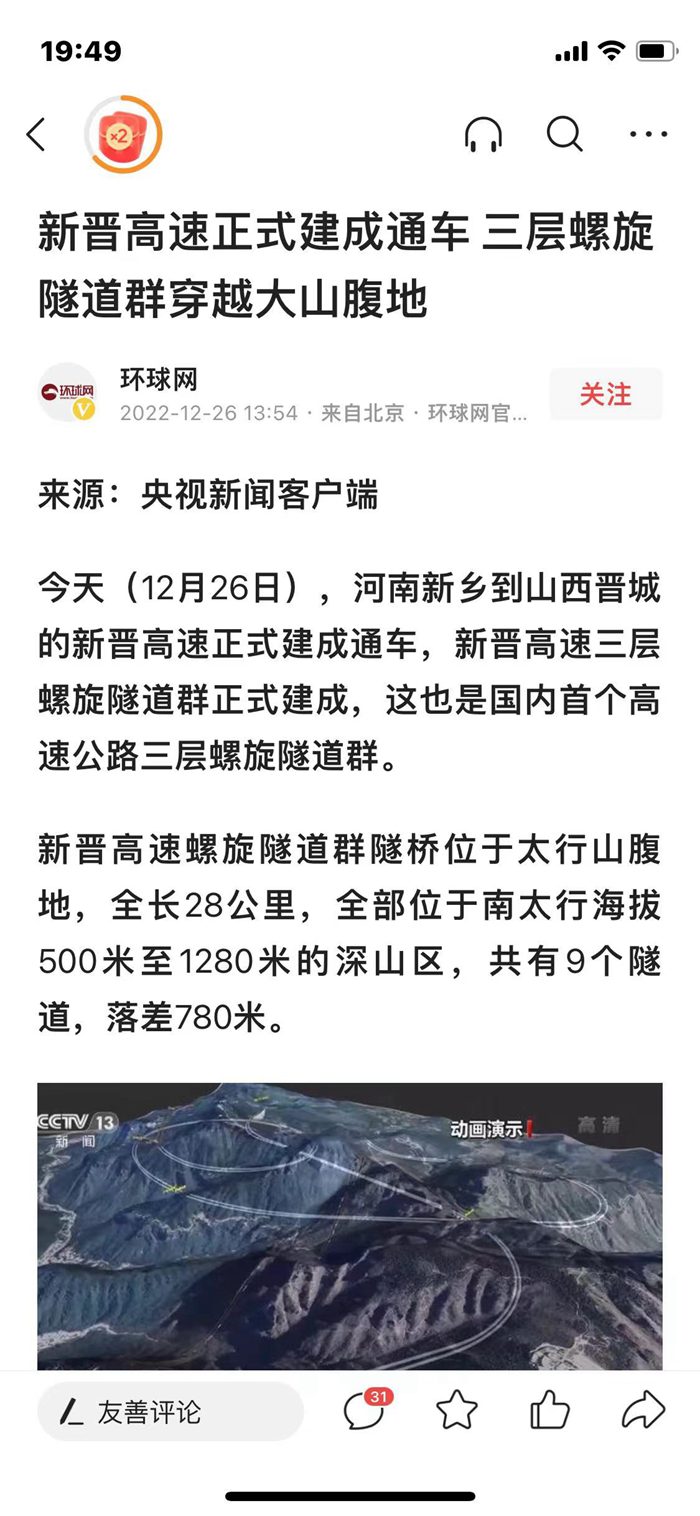 2022年12月26日河南新鄉到山西晉城的新晉高速正式建成通車,新晉高速公路三層螺旋隧道群正式建成,這也是國內首 個高速公路三層螺旋隧道群。其中韓口隧道、南湖隧道、轎頂山隧道、蒿坪隧道、白楝樹隧道二襯臺車均由本公司定設計制作。