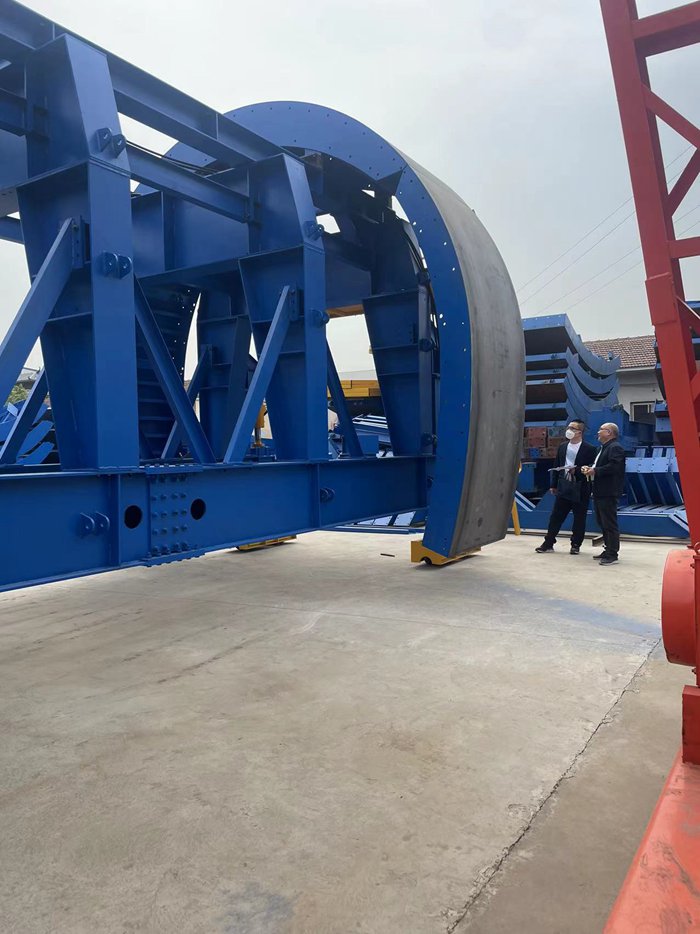 2023年4月13日,中鐵六局集團有限公司沈陽地鐵一號線1標項目經理部檢查驗收專家組蒞臨我廠,對訂購我廠生產的二襯臺車進行檢查測量驗收。在為期一天的驗收工作中,通過聽取現場匯報,實地測量,調試、繪圖3D模擬,對我廠的二襯臺車進行了細致的檢查驗收。